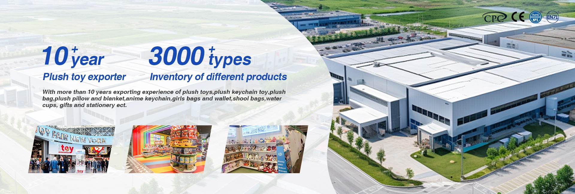Productos principales:Juguete de peluche, Juguete de peluche personalizado, Llavero de felpa, Bolsas de felpa, Papelería