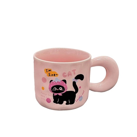 Ruunjoy Eco-Vriendelijke Keramische Handgemaakte Reliëf Roze Kat Beker Logo Ontwerp Porseleinen Keramische Mok Komen In Geschenkdoos Op Maat Groothandel